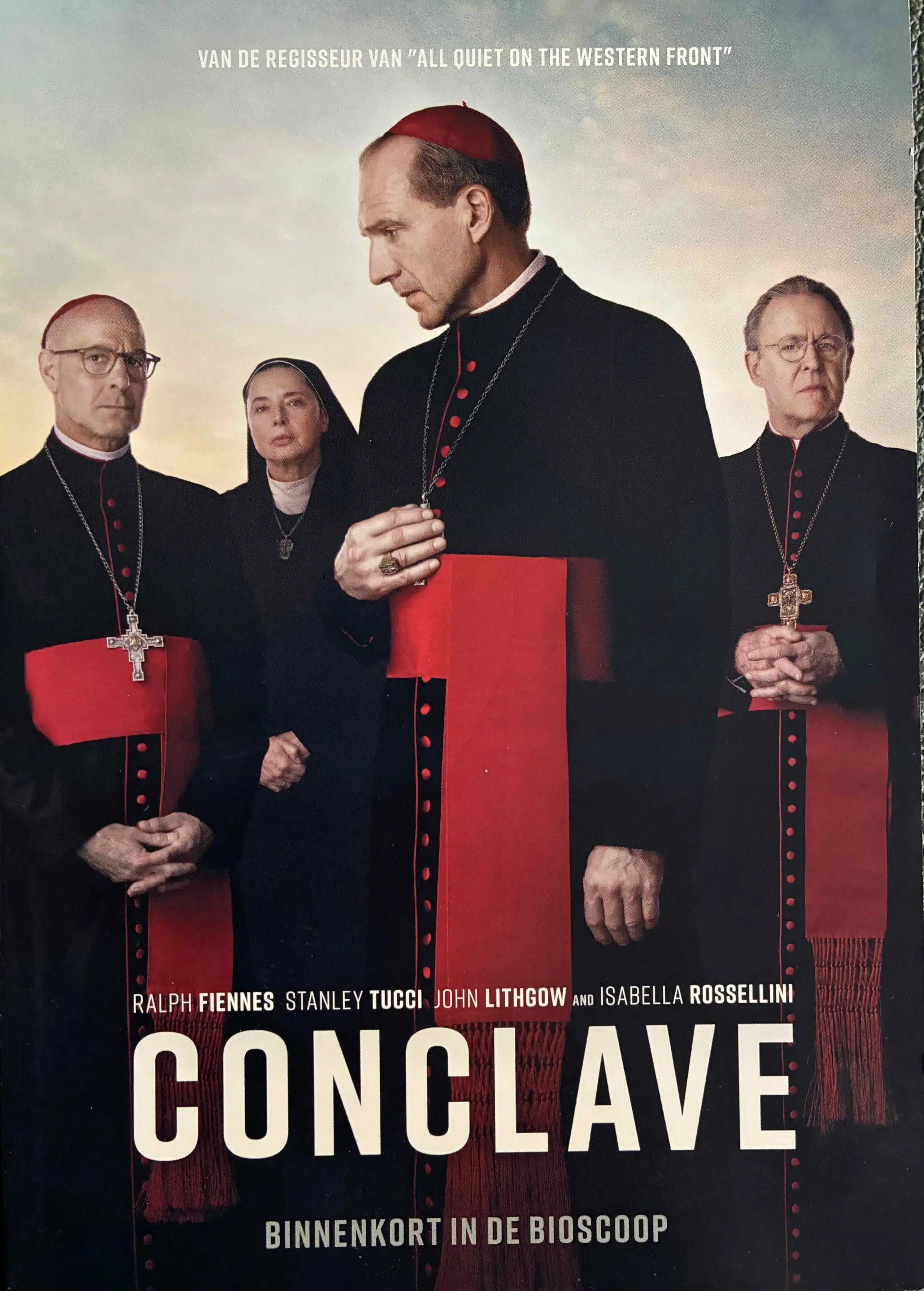 Wanneer de paus sterft, krijgt de bedachtzame kardinaal Lawrence (Ralph Fiennes) de zware taak om de besloten stemmingen voor een nieuwe kerkleider in goede banen te leiden. Welke sterveling kan de kerkelijke idealen dragen zonder ze te schande te maken? Lawrence moet laveren tussen favoriet en outsider, deelbelangen en eenheidsstreven, conservatieven en liberalen. Daarnaast spelen karaktertrekken als ijdelheid en dienstbaarheid, zekerheid en (geloofs)twijfel een rol. En dan zitten er nog lijken in de kast en breekt de buitenwereld in. Gedegen kerkpolitieke thriller met oog voor traditionele details en een verrassende ontknoping door regisseur Edward Berger, die ook de klassieker All Quiet on the Western Front op zijn naam heeft staan.